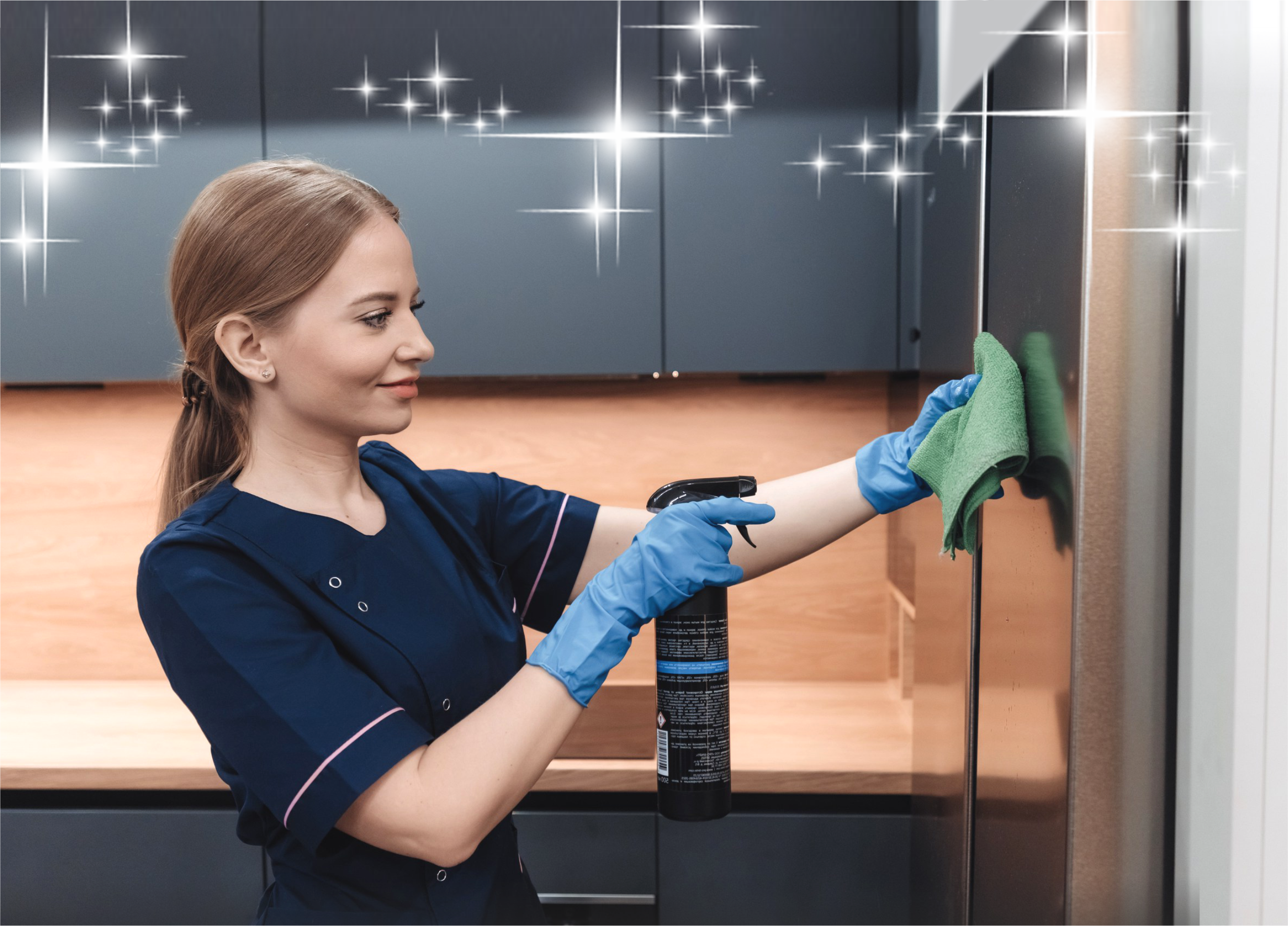 Весь инвентарь и средства для уборки мы привозим с собой. При определенных обстоятельствах и при согласовании сторон, мы можем использовать стремянку и пылесос клиента